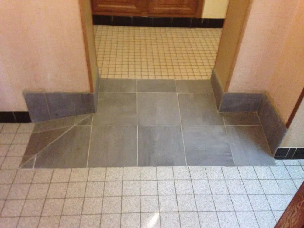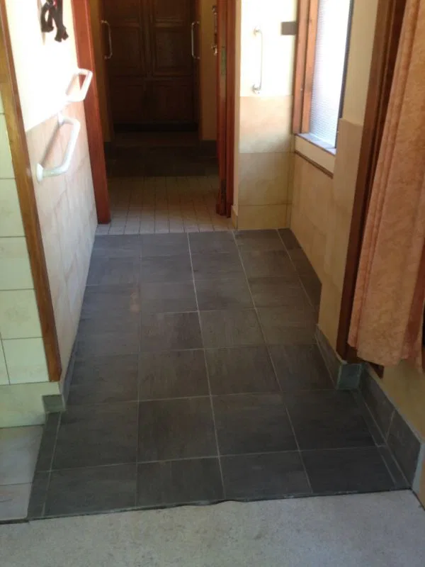 Accessibilité de l’habitat à Pau (64) réalisée par GP Travaux avec l’aménagement PMR d’une salle de bain et le couloir, avec anciennement des marches, pour le handicap du propriétaire :
