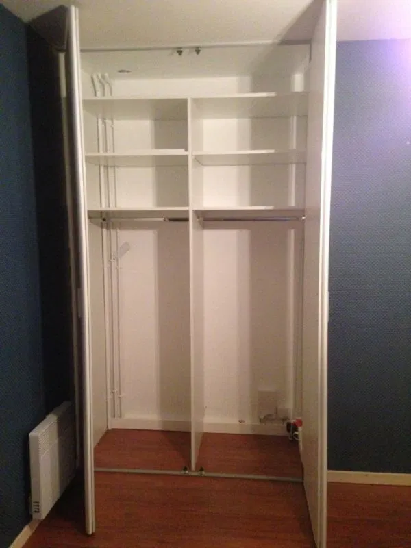 Projet de rénovation d’un placard de chambre réalisé à Pau par GP Travaux. Il s’agissait de la modification d’un placard avec création d’étagères et penderie en panneaux de 19mm et 2 portes ouvrantes.